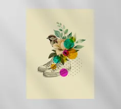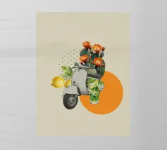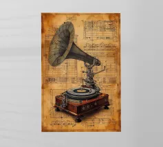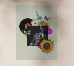 A nostalgic collage art print blending vintage charm with romantic whimsy. An ornate gramophone bursts with vibrant flowers and vinyl records, while a dancing couple captures the magic of timeless music. Perfect wall art for music lovers, retro decor fans, or anyone drawn to sentimental storytelling through design.