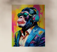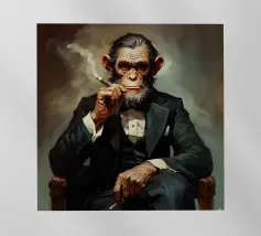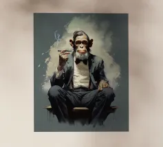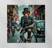 Scimmia su una bicicletta da un centesimo in una strada vittoriana Un'affascinante scimmia in abito a tre pezzi si muove in una vivace strada dell'epoca vittoriana su una bicicletta vintage da un centesimo, con colori vividi e dettagli nitidi che ricordano l'arte iperrealista.