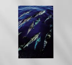 I delfini affascinano con la loro natura giocosa e il loro impressionante intelletto, che li rende veri e propri geni marini. Il loro comportamento sociale e la loro capacità di comunicare in gruppi complessi dimostrano quanto siano importanti la comunità e la cooperazione. Con i loro salti eleganti e i movimenti fluidi, irradiano pura gioia di vivere. I delfini incarnano il legame tra uomo e natura e ci ricordano quanto siano preziosi gli oceani. Ci ispirano a essere curiosi, giocosi e attenti al nostro ambiente.