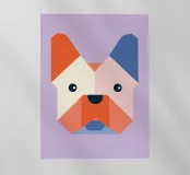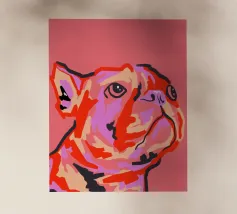 Un ritratto moderno e geometricamente strutturato di un Bulldog francese, in cui le superfici suddivise per colore - arancione forte e blu freddo - creano un campo di tensione suggestivo, quasi grafico. La chiara simmetria, le forme ridotte e il naso piccolo e tondo conferiscono al motivo un'affascinante miscela di sfrontatezza e dolcezza. Un ritratto di cane potente e contemporaneo per gli amanti delle illustrazioni stilizzate.