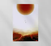 Descent of two skydivers over an alien red desert planet pellicola backlit