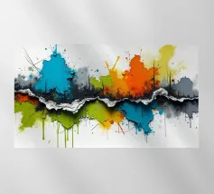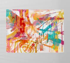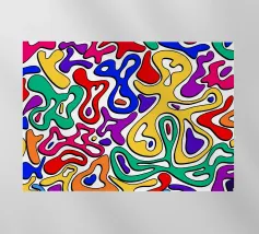 Questo disegno presenta un'intricata disposizione di linee fluide e colori vivaci, che creano un senso di movimento ed energia. Lo sfondo è neutro, per migliorare l'impatto visivo.