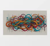 Questo disegno presenta un'intricata disposizione di linee fluide e colori vivaci, che creano un senso di movimento ed energia. Lo sfondo è neutro, per migliorare l'impatto visivo.