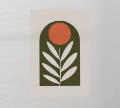 Questo motivo boho minimalista mostra un caldo sole serale su onde stilizzate, completato da delicati elementi a foglia. I toni terrosi dell'arancione e il blu tenue creano un disegno armonioso che irradia calma e naturalezza. Perfetto come murale, cuscino o tazza, questo disegno aggiunge un tocco artistico e moderno a qualsiasi ambiente. Portate calore e stile nella vostra casa con questo accento decorativo senza tempo.