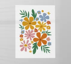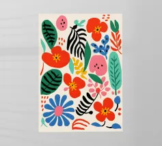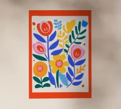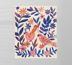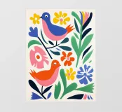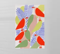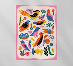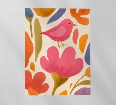 Questo incantevole disegno con uccelli colorati ed elementi floreali in blu, rosa, arancione e giallo dona un'allegra leggerezza a qualsiasi stanza. L'armoniosa combinazione di motivi naturali e colori vivaci lo rende un vero e proprio richiamo visivo. Perfetto per tazze, cuscini, murales o magliette: una scelta meravigliosa per chiunque voglia aggiungere un tocco di natura e creatività alla propria vita quotidiana.