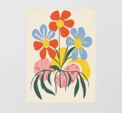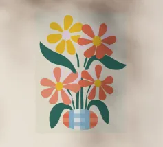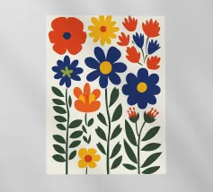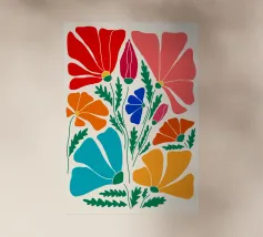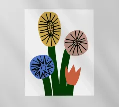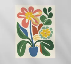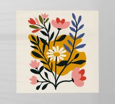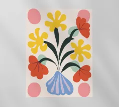 Questo vivace disegno floreale combina colori vivaci e forme moderne: Fiori rossi e blu con un centro giallo solare su un allegro sfondo rosa e giallo. Un motivo fresco ed elegante che unisce il fascino retrò degli anni '70 alla chiarezza scandinava. Perfetto come murale, tazza, cuscino o cover per cellulare, per gli amanti dei motivi floreali colorati, delle decorazioni di metà secolo e degli accessori moderni per la casa. Un richiamo ideale per il soggiorno, la camera da letto o l'ufficio e un regalo affascinante per gli amanti dell'arte e dei fiori.