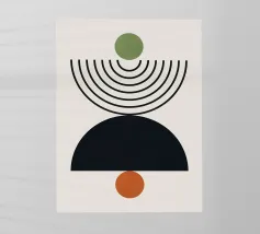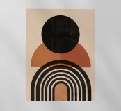 Questa opera d'arte minimalista combina forme semicircolari e circolari in colori armoniosi come il nero e la calda terracotta. Le linee pulite e l'estetica moderna creano un motivo senza tempo che spicca negli spazi abitativi moderni, negli uffici o nelle aree creative. Il design geometrico è ideale per murales, cuscini, cover per cellulari e molti altri prodotti che aggiungono un tocco di eleganza alla casa o al luogo di lavoro.
