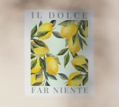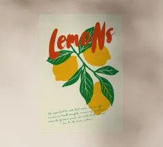 Questo colorato design retrò combina limoni e forme vivaci in blu e giallo per creare un'opera d'arte fresca e moderna. Ispirato alla leggerezza estiva e al fascino mediterraneo, porta freschezza e buonumore in ogni casa. Perfetto come murale, tazza o accessorio per la casa - ideale per gli amanti della grafica moderna, dei motivi di frutta e delle decorazioni estive.