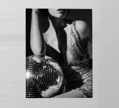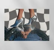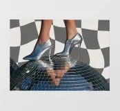 Entrate nella pista da ballo con questo poster digitale abbagliante che raffigura un paio di gambe con tacchi alti argentati e scintillanti, in equilibrio sicuro su una palla da discoteca riflettente. La scena dinamica si staglia su uno sfondo a scacchiera grigio e bianco deformato, creando un'estetica pop art retrò vibrante e surreale. Questo pezzo accattivante è perfetto per aggiungere glamour, atmosfera di festa e un tocco di nostalgia a qualsiasi salotto, camera da letto o area di intrattenimento. Realizzata con una notevole risoluzione di 7000x5000 pixel e 300 dpi, questa stampa digitale di qualità superiore assicura che ogni dettaglio scintillante e ogni audace motivo