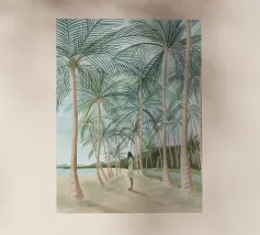 Sognante boho tranquillo costiero astratto palma da cocco Tranquillo isola bali vibes neutro colorato pastello beige crema bianco giallo ocra astratto pittura minimalista