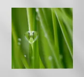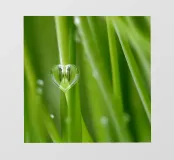 Erba verde con una goccia d'acqua a forma di cuore