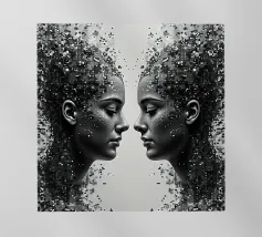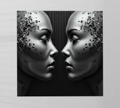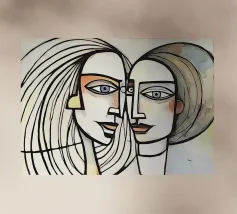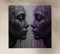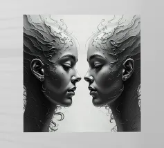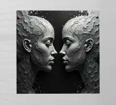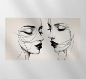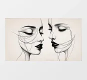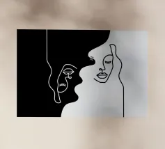 Due eleganti volti di profilo che mostrano un'intricata line art. pellicola backlit