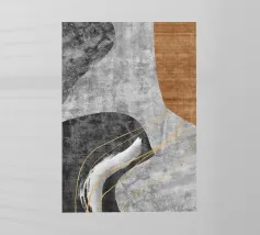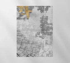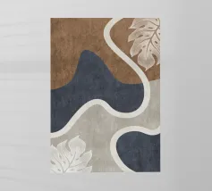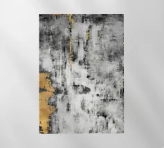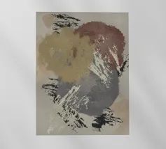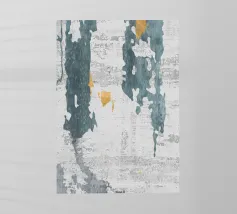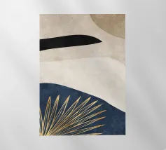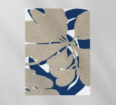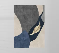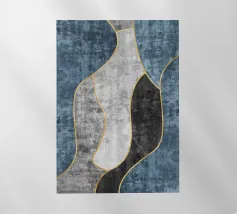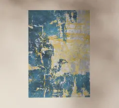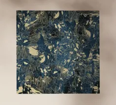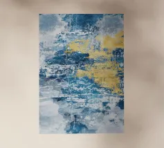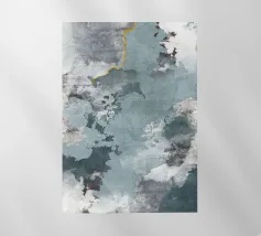 Un disegno dinamico e astratto presenta motivi vorticosi in tonalità di blu, bianco e accenni di giallo, suggerendo un senso di movimento e fluidità. Le aree di colore contrastante creano un effetto visivo suggestivo che ricorda elementi naturali come l'acqua e il vento.