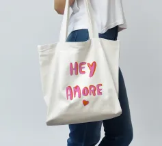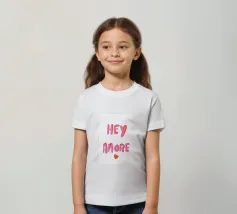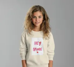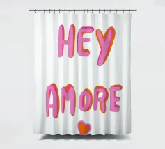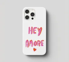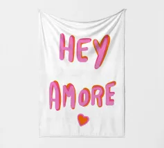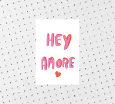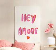 "Hey Amore" con un cuore - una tipografia affettuosa nei colori rosa-arancio-bianco che celebra la gioia della famiglia e dell'amore. Perfetto per matrimoni e come poster romantico.