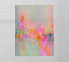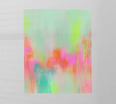 Quest'opera d'arte astratta mostra superfici colorate che si fondono tra loro nei toni del rosa pastello, giallo, blu, verde e rosa. Le morbide pennellate e l'armoniosa composizione cromatica in stile pop art creano un'atmosfera vibrante e vivace. Il motivo appare moderno, leggero ed emozionante e invita a una libera interpretazione.