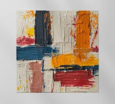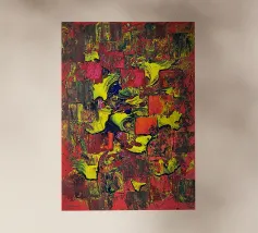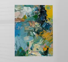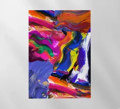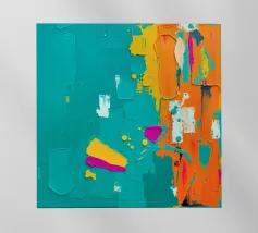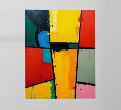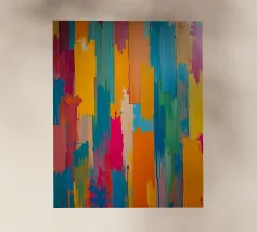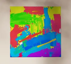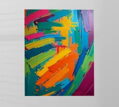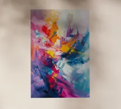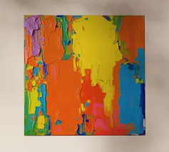 Colori vivaci si fondono in forme dinamiche, creando una composizione gioiosa ed energica. L'assortimento di tonalità offre un'esperienza visiva sorprendente e piena di movimento.