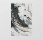 Un'opera d'arte astratta dinamica dominata da ampie pennellate di grigi e bianchi, che creano un potente movimento vorticoso. La tavolozza monocromatica enfatizza la texture e il flusso energetico della composizione.