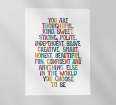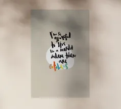 Celebrate l'individualità con la nostra vivace stampa tipografica "Be a Fruitloop in a World of Cheerios". Questo messaggio giocoso prende vita con una splendida scritta dipinta a mano in acquerello arcobaleno, che contrasta splendidamente con uno sfondo bianco. Perfetto per le camere dei bambini, le camerette o qualsiasi altro spazio che necessiti di un tocco di colore e positività, questo allegro disegno incoraggia ad abbracciare l'unicità. Lo stile artistico e stravagante si rivolge sia ai bambini che agli adulti, rendendolo un'aggiunta versatile a qualsiasi casa. Lasciate che questa stampa ispiratrice illumini il vostro spazio e ispiri fiducia!