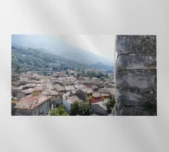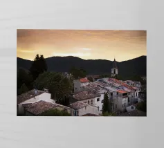 Il grazioso villaggio collinare di Eus, nei Pirenei Orientali, nel sud della Francia.