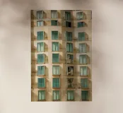 Modelli urbani a Berlino-Mitte: La moderna facciata dell'edificio si presenta come un disegno geometrico di vetro e pietra. Le finestre, disposte in modo uniforme, riflettono la luce del giorno, mentre le dolci onde della struttura dell'edificio spezzano il ritmo rigoroso. Le sottili tracce del tempo e delle intemperie conferiscono all'architettura chiara una sottile vivacità: un gioco tra ordine e cambiamento organico.