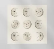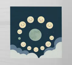 Facce di luna sorridenti in diverse fasi con vari volti pellicola backlit