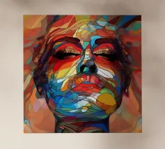 Vivid abstract illustration of a human face rendered with bold brushstrokes and vibrant splashes of red, blue, yellow, and black. Expressive details evoke emotion and creativity, blending modern art and realism.