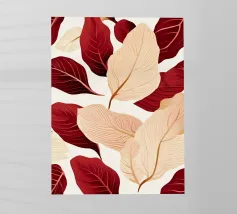 This intricate, seamless pattern showcases a beautiful array of leaves in rich, autumnal tones of deep burgundy, warm gold, and burnt orange. The delicate, hand-drawn style reveals the detailed veins of each leaf, creating a sense of natural elegance and depth. Against a soft, neutral background, the different sizes and colors of the leaves overlap to create a harmonious and sophisticated design. This versatile pattern is perfect for a wide range of products, including fabric for home decor or apparel, stationery, scrapbooking, wallpaper, and other creative projects. The timeless, nature-inspi