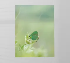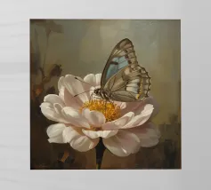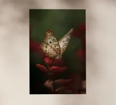 Lo sfondo si scioglie in tonalità sognanti, attirando l'attenzione sulla forma aggraziata e sulla fragile bellezza dell'insetto. La luce danza sulle sue ali, creando un senso di calma e di fugace meraviglia, come se catturasse un tranquillo respiro della natura".