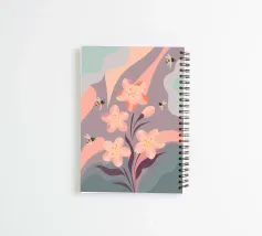 Il disegno dettagliato presenta una varietà di fiori vivaci visitati da api indaffarate.