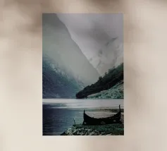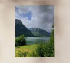 Catturata nel cuore della Norvegia dei ghiacciai, questa veduta del Fjaerlandsfjord mette in risalto il blu intenso delle acque incorniciate dalle ripide pareti delle montagne e dalla quiete della natura selvaggia. La scena trasmette un senso di calma e forza, aperta, ampia e inconfondibilmente nordica. Un'opera senza tempo per chiunque sia attratto dai paesaggi selvaggi e dalla forza tranquilla della natura.