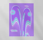 Due forme dai contorni fusi si fronteggiano, come se levitassero. I loro colori cangianti ondeggiano su uno sfondo color lavanda, creando un effetto calmo e ipnotico. L'immagine evoca un dialogo silenzioso tra due entità astratte, vicine ma separate, in uno spazio fluttuante.