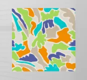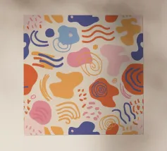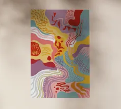 Questo disegno presenta una composizione astratta di linee e forme organiche in colori vivaci. Le transizioni fluide e la disposizione armoniosa conferiscono al motivo un'aura calmante e meditativa.