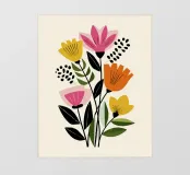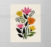 Audace, giocosa e artistica, questa opera d'arte botanica ispirata alla metà del secolo scorso porta lo spirito di Matisse nella casa moderna. Forme floreali sovradimensionate in toni retrò come il rosso pomodoro, il giallo senape, il corallo tenue e il verde acqua sono disposte in stile collage su uno sfondo chiaro. La composizione astratta bilancia il flusso organico con la chiarezza grafica, perfetta per creare un look vivace ma curato. Ideale come elemento di spicco in salotti, studi o spazi di lavoro creativi.