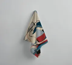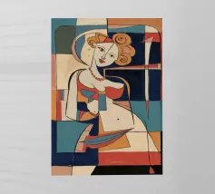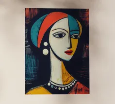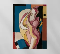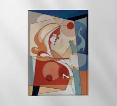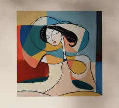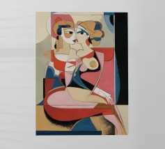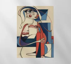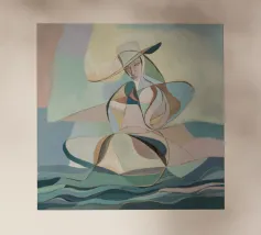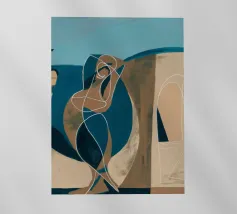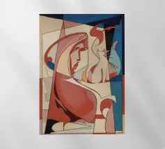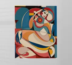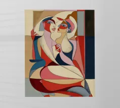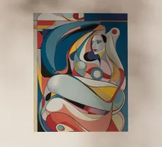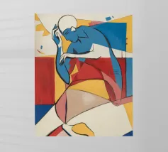 Quest'opera d'arte presenta una composizione contemplativa e introspettiva con un mix di forme geometriche e organiche. La tavolozza dei colori comprende blu, rosso e beige, creando un senso di equilibrio e armonia. La disposizione ponderata di forme e colori ne fa un'opera accattivante.