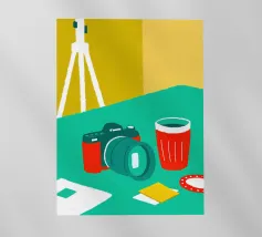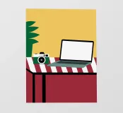 Scatenate la vostra creatività! Illustrazioni ispirate a fotocamere e laptop. Design perfetto per blogger, fotografi, videografi e tutti i creatori di contenuti.
