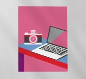 Scatenate la vostra creatività! Illustrazioni ispirate a fotocamere e laptop. Design perfetto per blogger, fotografi, videografi e tutti i creatori di contenuti.