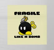 Questo disegno presenta una simpatica bomba giocattolo con piedi gialli e un'espressione determinata, accompagnata dalla frase "Fragile come una bomba!". Un'arte che unisce umorismo e creatività per illustrare il contrasto tra fragilità e potenza, con un design ispirato all'universo geek e nostalgico. Perfetto per i giocatori, gli appassionati di cultura pop e tutti coloro che apprezzano i messaggi umoristici e d'impatto.