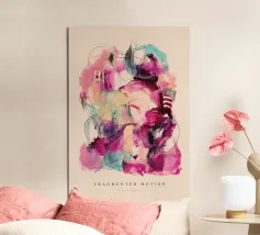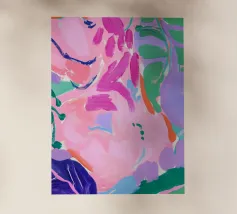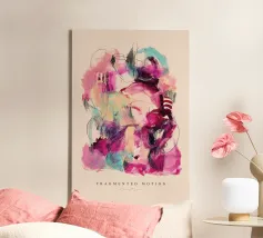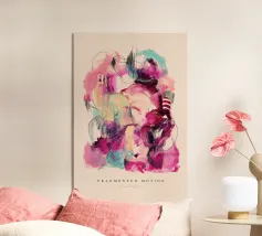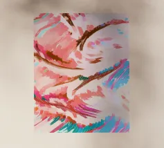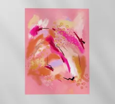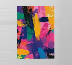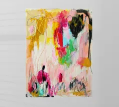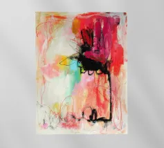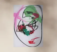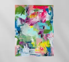 In quest'opera a tecnica mista, forme frammentate e colori dinamici suggeriscono un movimento catturato nel tempo. Il gioco di texture e toni crea un'esplosione di energia, congelata a metà del movimento, aggiungendo un senso di profondità e flusso alla composizione.