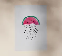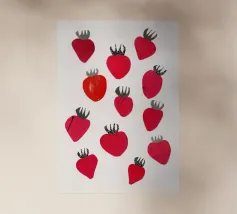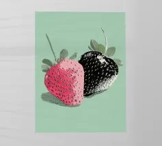 Come un ricordo stampato nel cemento, "Fruit Fossile" congela la fragola in un nero granuloso, grezzo, quasi archeologico. Questo poster evoca un tempo in cui la frutta era un totem, un simbolo, un marchio. A metà strada tra l'arte primitiva e l'estetica underground, trasforma la dolcezza in potere, la bontà in icona. Perfetto per un arredamento che non teme il contrasto, tra tenerezza del passato e tensione grafica.