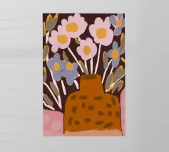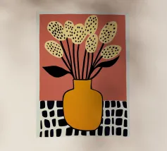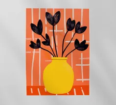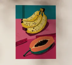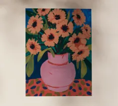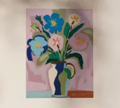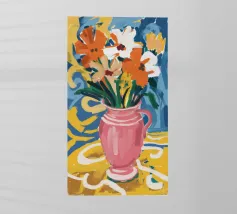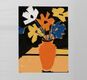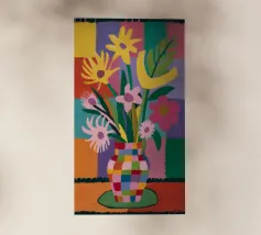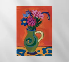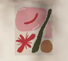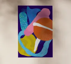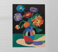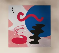 Un'opera d'arte astratta vibrante ed espressiva con una fusione di colori audaci di ispirazione fauvista come il magenta, l'arancione e il nero. Le pennellate e le forme energiche creano un'opera dinamica e appassionata.
