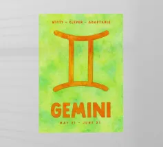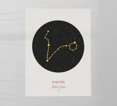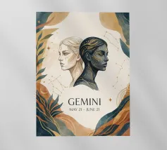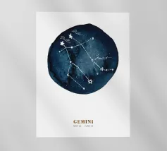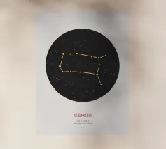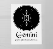 Questo disegno rappresenta il segno zodiacale dei Gemelli, simboleggiato da due gemelli in equilibrio e armonia. Con una composizione circolare, l'immagine gioca su elementi geometrici e punti stilizzati che evocano la dualità e la versatilità di questo segno. Le linee e i dettagli centrali sono equilibrati, suggerendo il legame tra le due personalità gemelle, mentre la disposizione dei punti intorno al cerchio enfatizza l'idea del movimento e del continuo cambiamento, tratti tipici dei Gemelli. Il design minimalista con contrasto bianco e nero lo rende elegante e facilmente adattabile a diversi stili di arredamento.