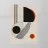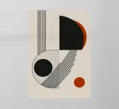 Forme e linee geometriche in nero e arancione creano un armonioso disegno astratto. L'equilibrio di semicerchi, cerchi e linee crea una composizione dinamica ma minimalista. Lo sfondo neutro esalta il contrasto tra i colori e le forme più vivaci.