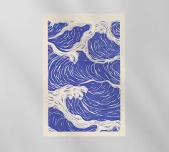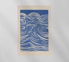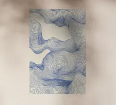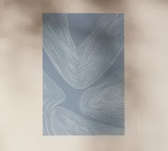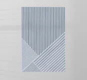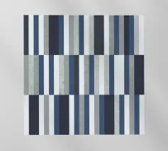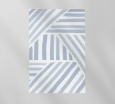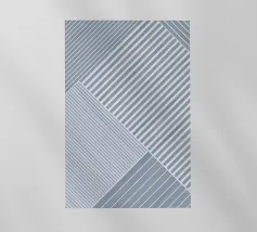 Disegno astratto con sezioni di linee bianche diagonali e verticali su sfondo azzurro, che creano un motivo geometrico dinamico. Ideale per progetti di arredamento moderno e design grafico.