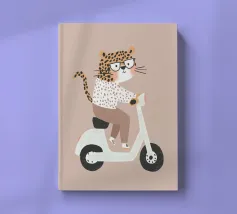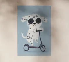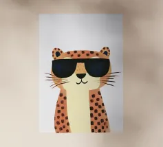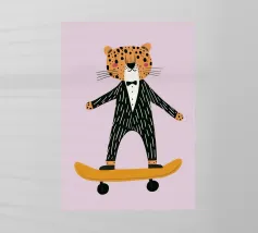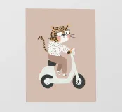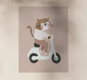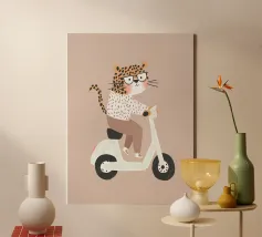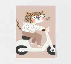 Ghepardo su monopattino, stampa animale, arte per bambini