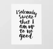 La stampa tipografica I Solemnly Swear That I Am Up to No Good presenta un'audace scritta disegnata a mano in nero su uno sfondo bianco. Questa dichiarazione maliziosa, ispirata al magico mondo di Harry Potter, aggiunge un tocco giocoso a qualsiasi stanza. Perfetta per i fan della serie o per chiunque abbia uno spirito ribelle, questa stampa accattivante fa la sua figura in case, uffici o dormitori. Il contrasto netto e il design elegante la rendono adatta a diversi stili di arredamento, dal moderno all'eclettico.