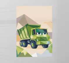 Illustrazione di un go-kart minimalista su una pista con uno stile geometrico moderno.