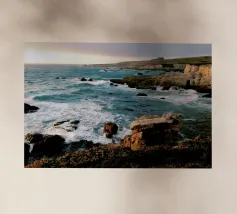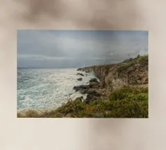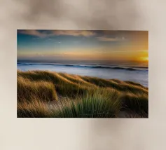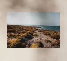 Questa splendida fotografia cattura un sereno paesaggio costiero. Perfetta per gli appassionati di natura e per coloro che apprezzano la tranquilla bellezza degli ambienti costieri, questa immagine conferisce un senso di pace e di splendore naturale a qualsiasi spazio.