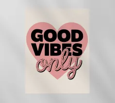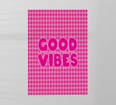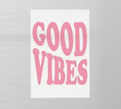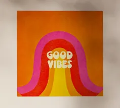 good vibes art, design arcobaleno rosa, estetica retrò, grafica allegra, messaggio edificante, stile minimalista colorato