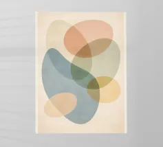 Dieses moderne Kunstwerk verbindet klare Formen mit sanften Farbverläufen in Apricot, Rosé und Petrolblau. Die reduzierte Komposition mit zwei halbkreisförmigen Flächen schafft Ruhe, Balance und stilvolle Ästhetik. Perfekt für moderne Interiors, skandinavische Einrichtungen und alle, die ruhige Wandkunst mit Farbakzent lieben.