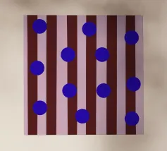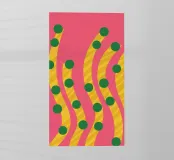 A simple and playful pattern of green, pea-like dots is scattered across a vibrant pink background, creating a fun, cheerful, and modern design.